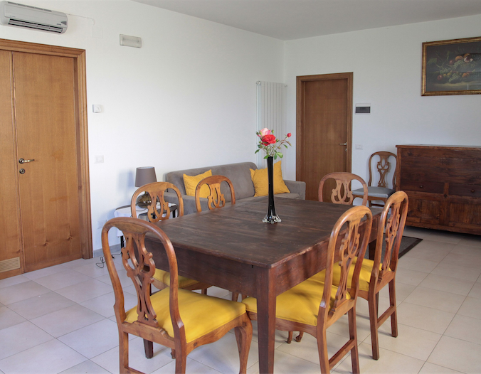 L'appartamento รจ di 75 mq cosi composto: ampio salone con cucina attrezzata, camino, divano letto, una camera tripla con bagno e sala con doccia idromassaggio, lavatrice, lavastoviglie. Schermi LED, Lettore dvd, frigo,giardino esclusivo con ampio tavolo e BBQ